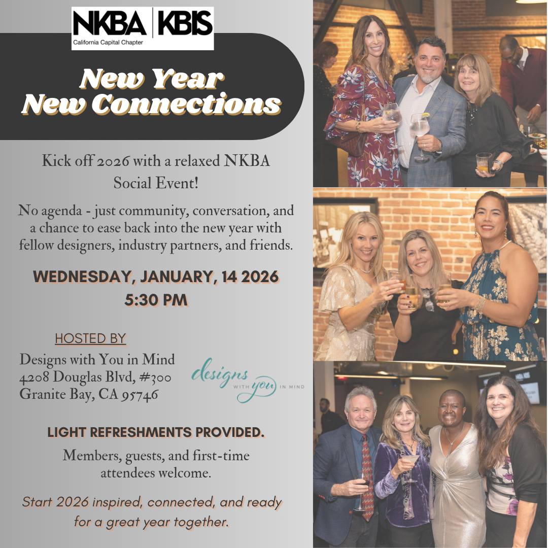 We’re kicking off the new year with a relaxed NKBA Social Event at the beautiful Designs With You in Mind studio in Granite Bay, and we’d love for you to join us!
