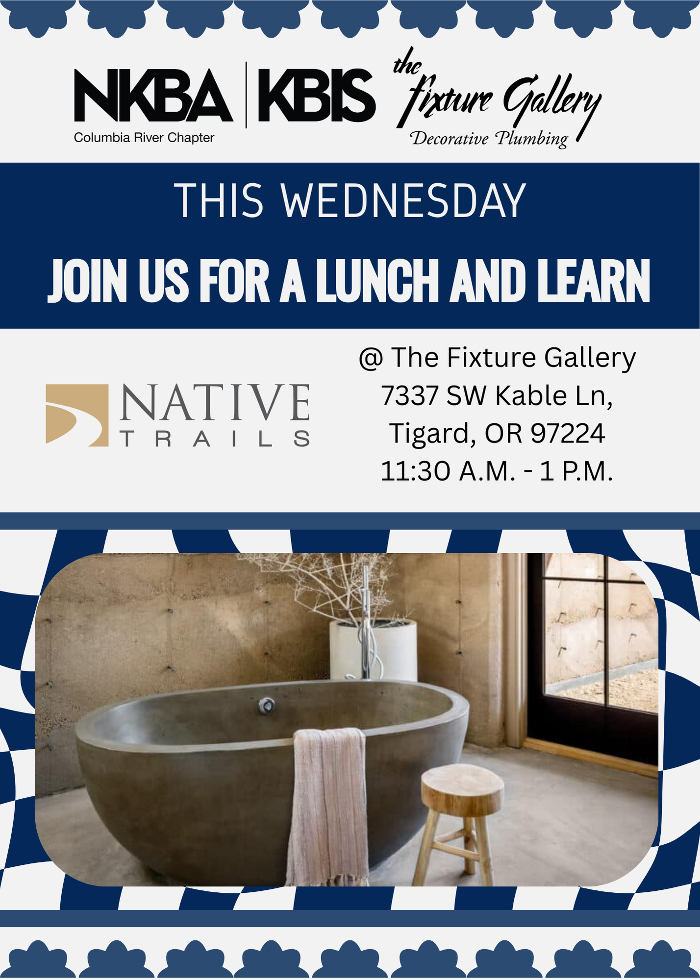 Join the showroom team at The Fixture Gallery Tigard for a tour of their plumbing showroom then enjoy a hosted lunch featuring a PK on innovative shower/tub wall product options besides tile.
