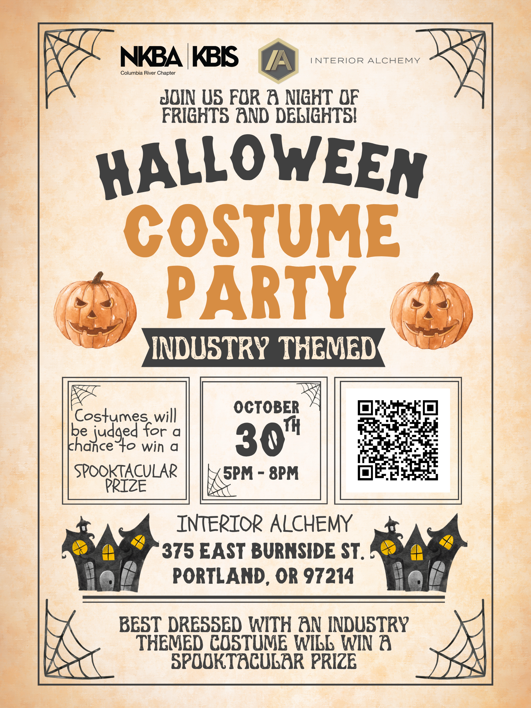 Join the NKBA Columbia River Chapter and Interior Alchemy for a frightfully fun evening of Haunted Elegance! Step into a world where design meets the dark side — a night filled with creativity, costumes, and a touch of spooky sophistication.