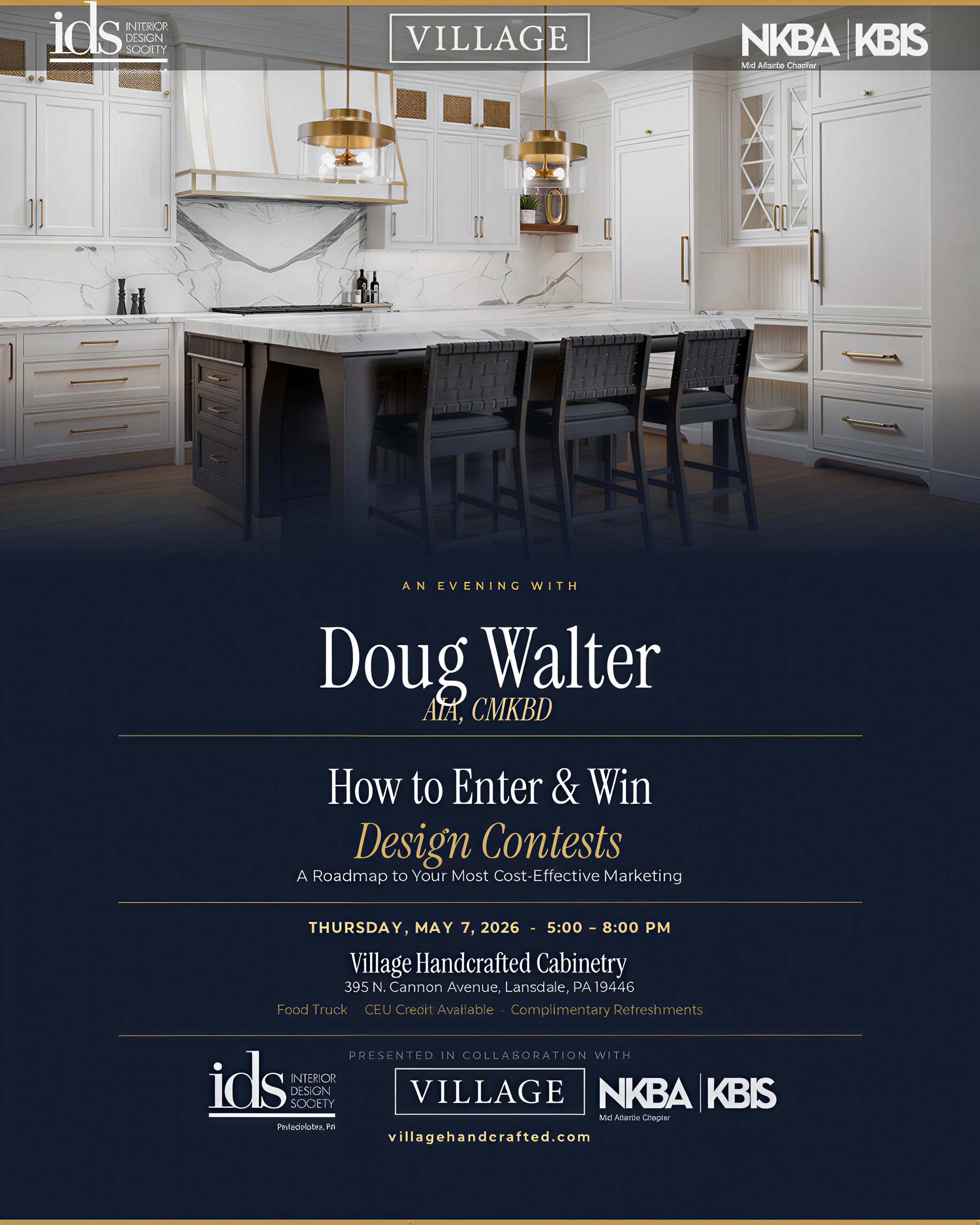 Hosted by our industry partner Village Handcrafted Cabinetry for a special presentation with Doug Walter, AIA, CMKBD, as he shares How to Enter & Win Design Contests: A Roadmap to Your Most Cost-Effective Marketing.