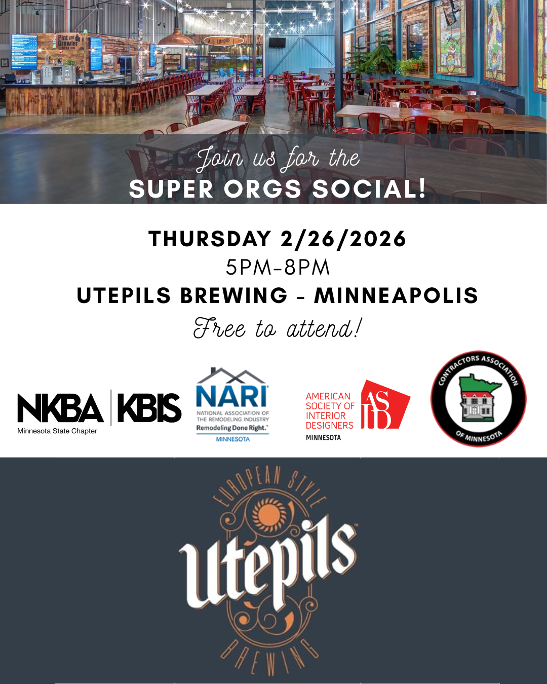 The NKBA Minnesota Chapter is excited to partner with NARI Minnesota, ASID, and the Contractors Association of Minnesota for a collaborative evening bringing together leaders and professionals from across the construction, remodeling, and interior design industries.