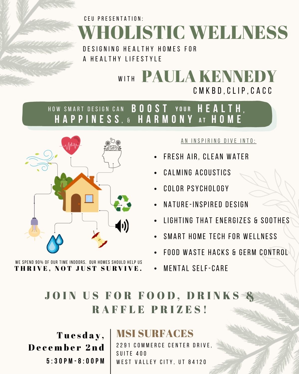 Paula Kennedy, CMKBD, CLIPP, CACC Presents Wholistic Wellness - Healthy Families in a Healthy Home