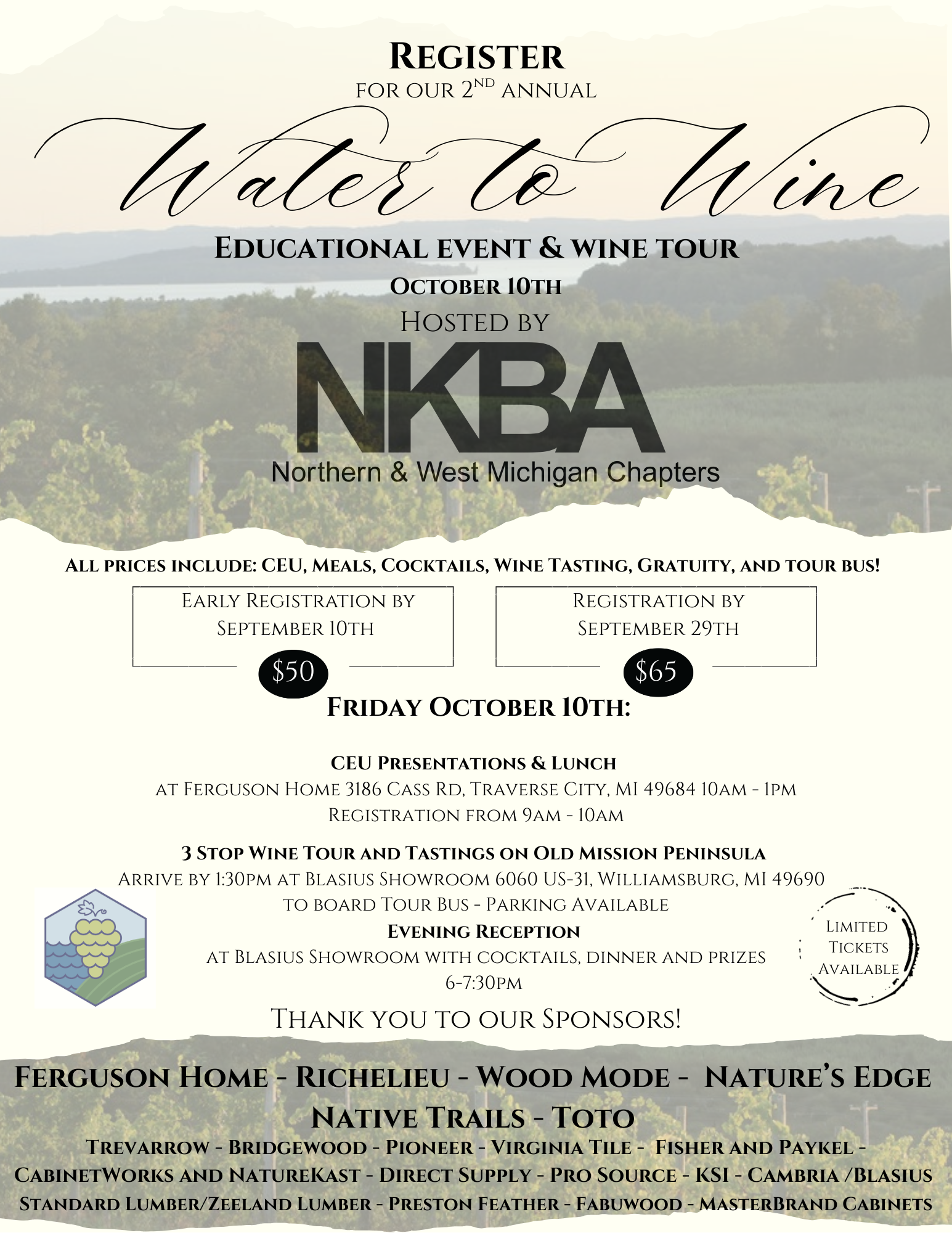 Where: Ferguson Bath, Kitchen & Lighting Gallery 3186 Cass Rd.Traverse City, MI 49684