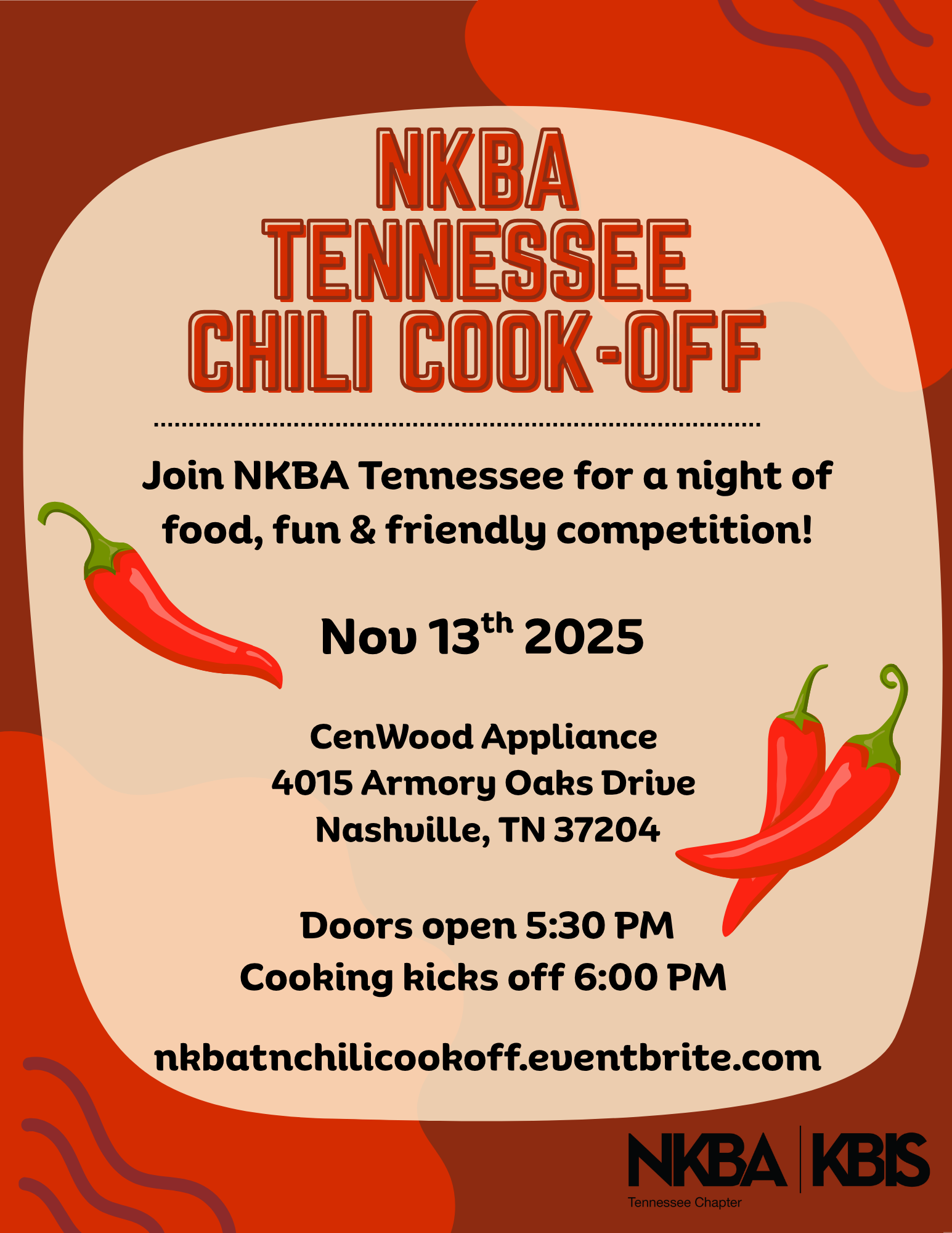 Get ready for a night full of flavor, fun, and friendly competition! Join us for the NKBA Tennessee Chili Cook-Off — an evening where industry pros trade design plans for chili pans.