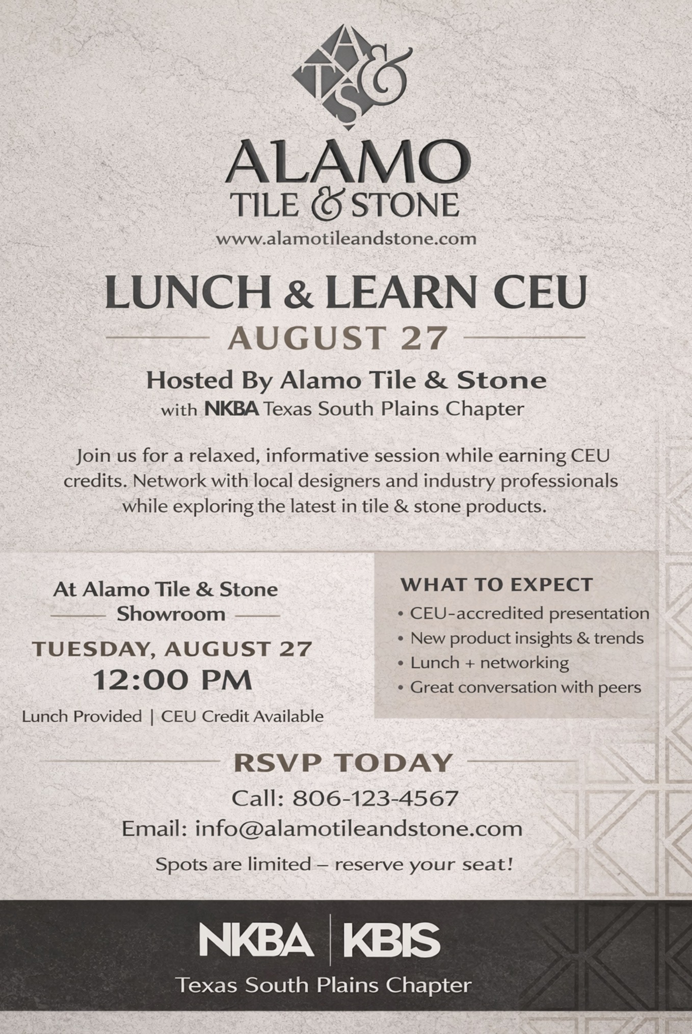 Alamo Tile CEU Lunch and Learn - more information will be updated soon
